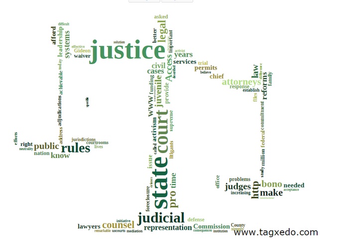 Kate Bladow, at Technola has used Tagxedo to create the same kind of cloud in the shape of the scales of justice. (see her Comment below for more information.)